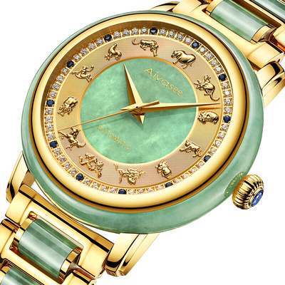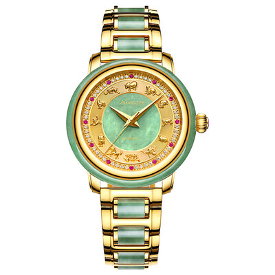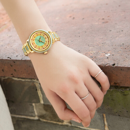 采用复古金镶玉外观设计风格,翡翠表盘点缀镀金图案,美如艺术品。结合12生肖装饰,时光流转之间,带来别样使用感受。