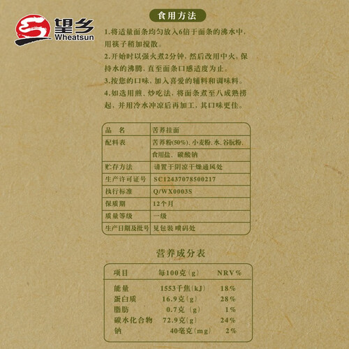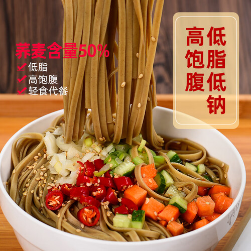 这是一款脂肪含量更低的手工面条,适合减脂或健身人群食用,好吃不长胖。在原料中特别添加苦荞麦,带来更加柔顺的口感。