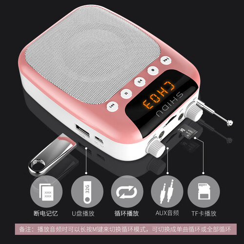 10W大功率输出,震撼大音量,没有杂音以及啸叫声,轻松覆盖整个房间。能插卡,U盘,还有收音机功能。