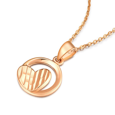 吊坠采用爱心与圆环的组合,设计感十足,斜线雕刻,时尚清新。采用色泽靓丽的18k金材质,时尚优雅。