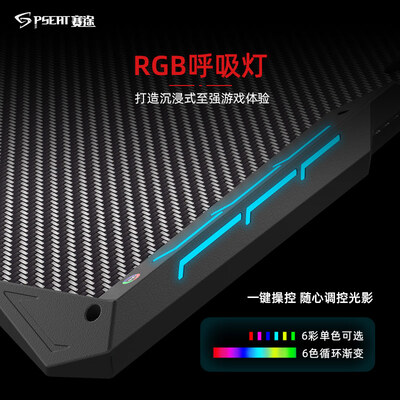 碳纤维纹理的桌面,环保无异味,使用更舒心,并且添加RGB呼吸灯,拥有六彩循环渐变的灯光,增加游戏氛围感。