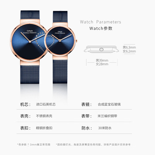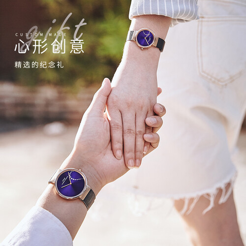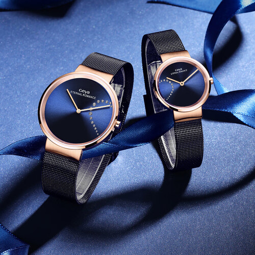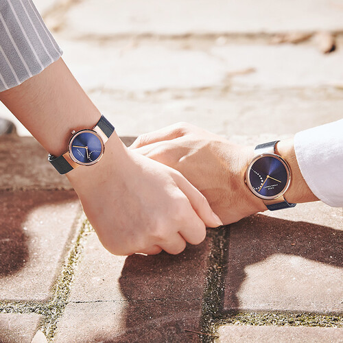这款石英表采用了无刻度和大二针的设计,显得整个表盘很简约干净,同时让你日常的读时更轻松。整体采用蓝色调设计,显得很深邃。