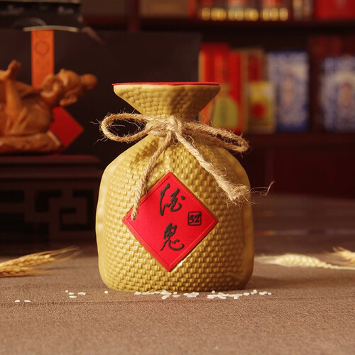 优质五粮精酿发酵,浓前酱味、清香还在中的三香兼具的多层次酒感。麻袋瓶体妙笔天成,古朴凝重,传达真挚情谊。