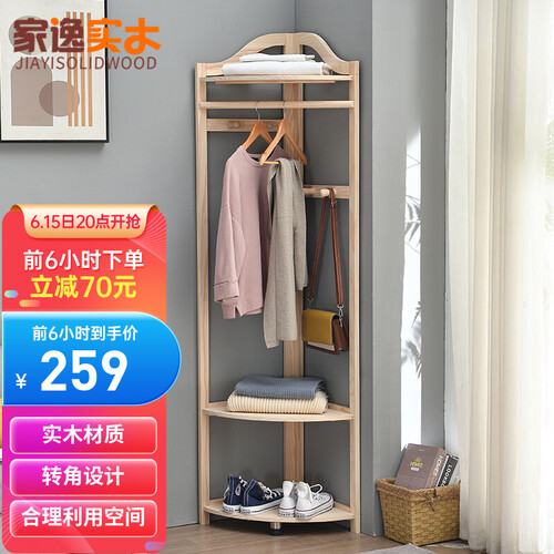 人性化的可拆卸挂钩设计,精细打磨处理,圆滑的触感,挂物更方便;底部空气式脚垫,减轻衣帽架承重,经久耐用。