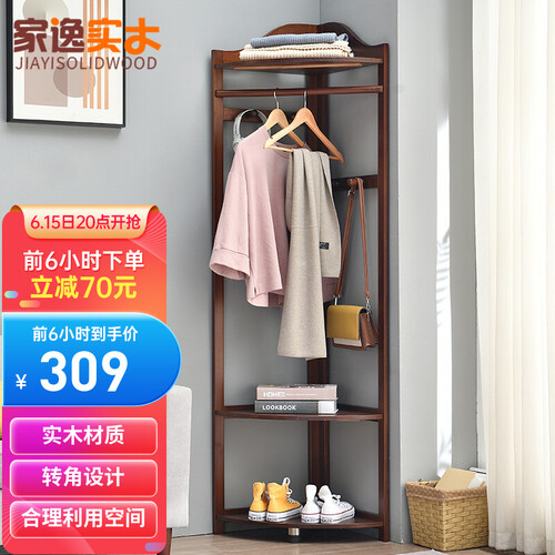 家逸 实木转角衣帽架