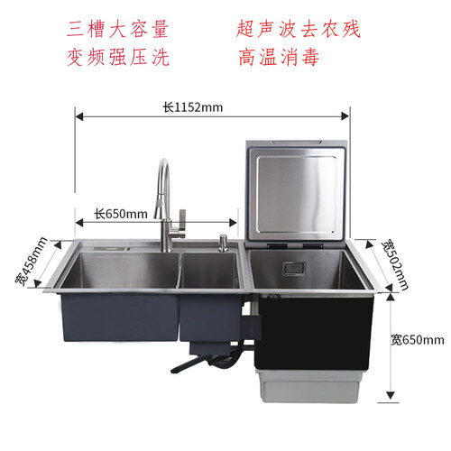 米言 三槽超声波水槽洗碗机