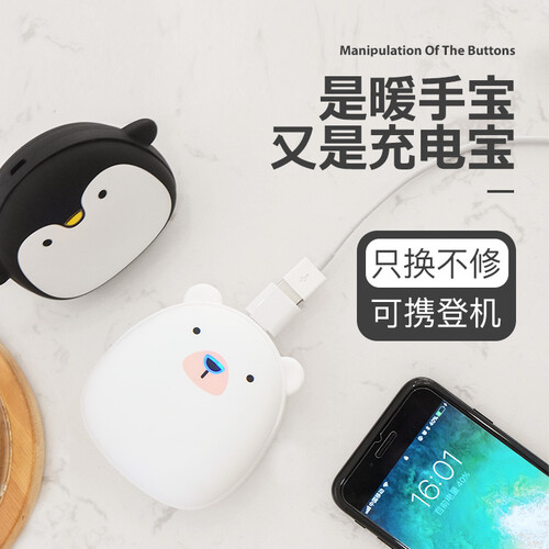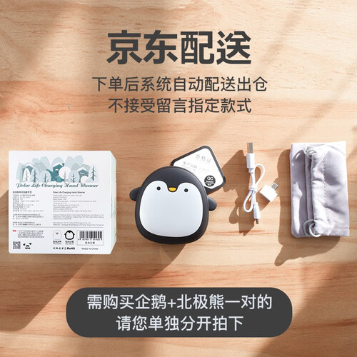 圆润可爱的企鹅造型设计,给人以活泼可爱之感,外型简约时尚。大小适宜合手,能使手部暖和舒适,实用性强。