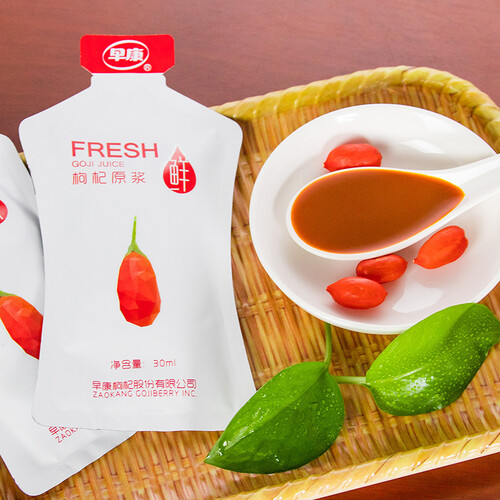 新鲜采摘的枸杞在6小时内通过超低温破碎榨汁,很好保留了丰富的氨基酸、维生素和矿物质等营养成分,口感新鲜、营养易吸收。
