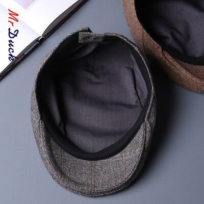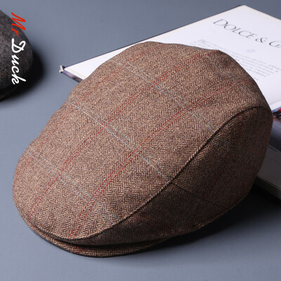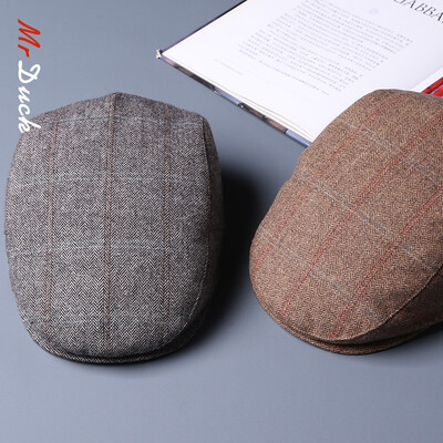 复古时尚格子图案街头鸭舌帽,优选羊毛保暖舒适,精湛工艺走线均匀。