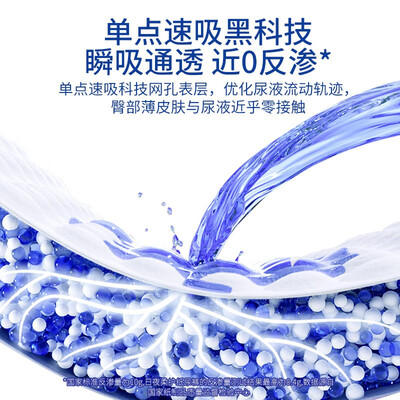 采用高品质无纺布面料,结合双向导流层设计,能够充分吸收尿液水分。双层隔边防侧漏结构设计,让宝宝整夜干爽舒适。