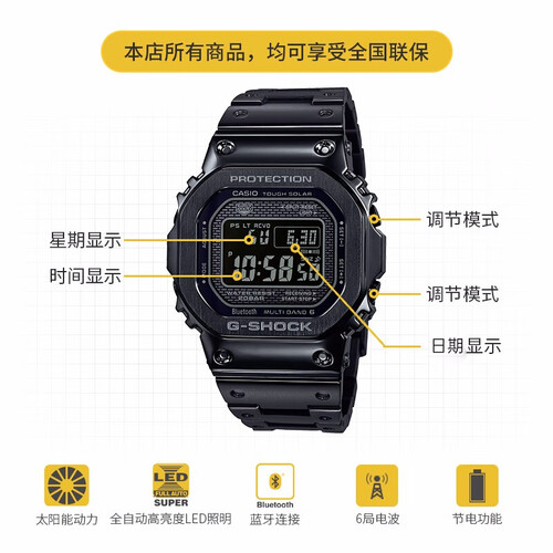 这款手表具有全金属抗震结构设计,防护性强,无惧日常生活中的磕磕碰碰。支持电波信号接收功能,可进行时间校正,使用更省心。