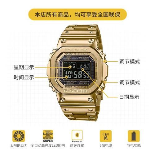 这款金色表身手表,自带吸睛光环,并释放出耀目光泽。内置太阳能动力系统,可轻松将光能转为电能,并让手表保持稳定运行。