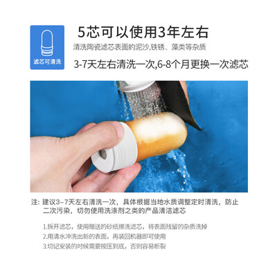 采用纯硅藻陶瓷质地的滤芯,它是经过高温烧制而成的,滤芯整体光滑,质地坚硬,经得住长久使用。