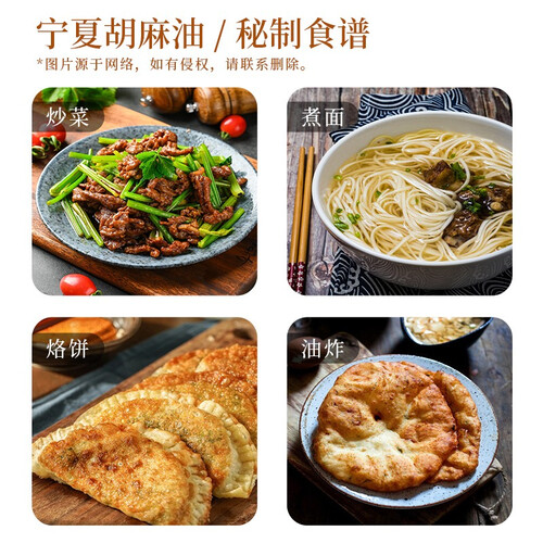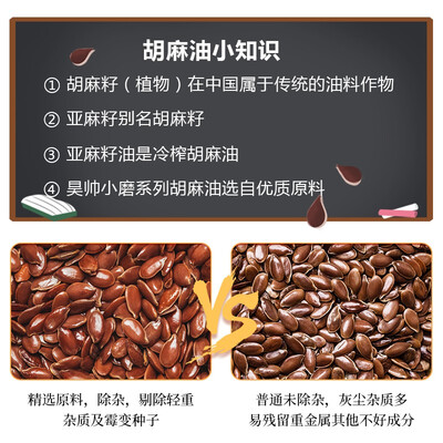 选自优质产区的亚麻籽,古法压制纯胡麻油,醇香口感,香味浓郁,低温压榨含丰富亚麻酸,清澈纯净营养高。