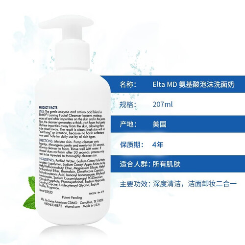 添加了弱酸性氨基酸类,ph和肌肤相近,可温和呵护你的肌肤。带有多种植物精华,可深层清洁脸部肌肤,解决出油问题。