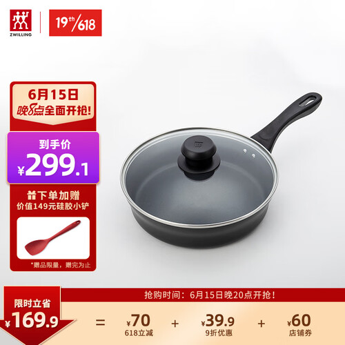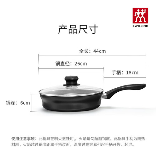 双立人 无孔锅盖平底锅