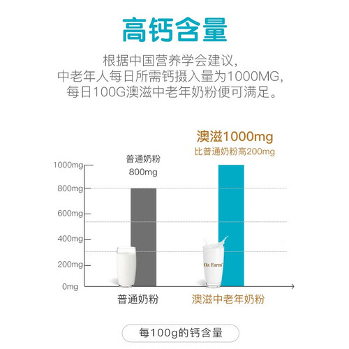 源自澳大利亚的纯净奶源,结合无糖配方,更适合中老年人的身体。高钙低脂肪,含有11种维生素,能够满足中老年人的营养需求。