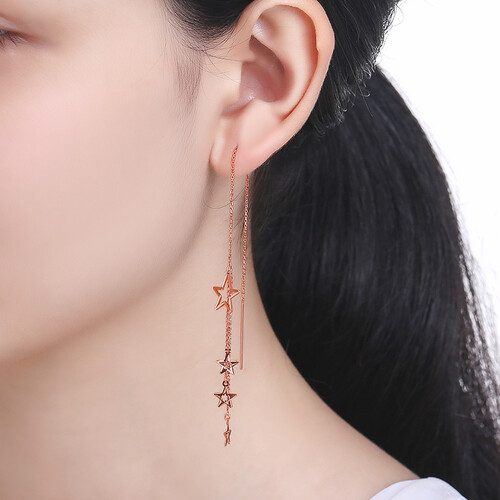 精巧别致的星星,丰富视觉看点,凸显潮流俏皮感。亮丽的玫瑰金配色,在耳畔更加吸引眼球。