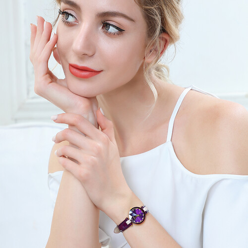 菱形钻石般切割镜面,光彩绚丽闪耀夺目。四爪镶嵌刻度,闪耀牢固优雅迷人。个性锋芒太妃指针,精工细琢利落明快。