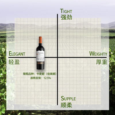 选用卡麦妮葡萄为原料,经法国橡木桶陈酿10个月而成,细细品味,饱满的酒液中,夹杂着草莓、覆盆子和马卡龙的气息。