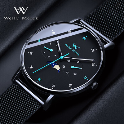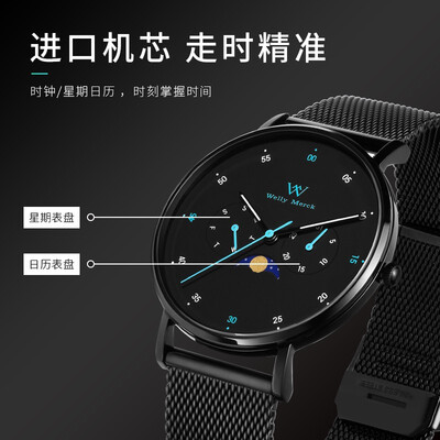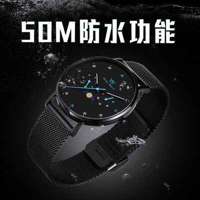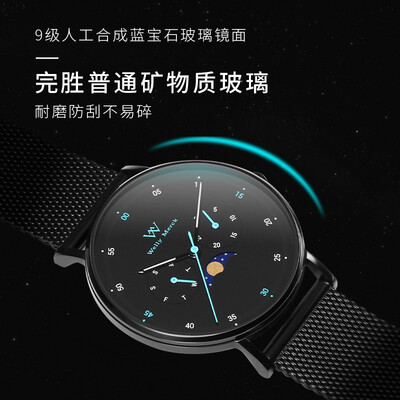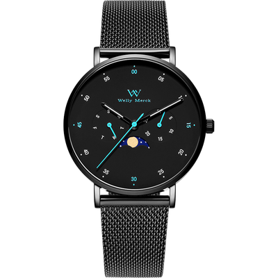 配有蓝色指针,衬托出黑色表盘的神秘,个性简约。表壳线条干净利落,形状优美。