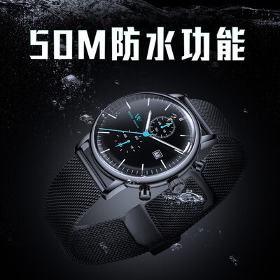 轻薄的款式设计,打破传统样式的呆板和沉重,不给手腕造成压力。拥有50米的防水能力,密封性强更实用。
