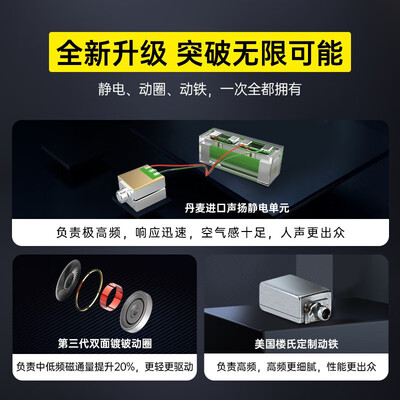 使用液晶复合钛膜动圈单元,带来丰富低音,提供自然高分辨率音质。采用4蕊线心结构,低频更紧实且弹性,分离度更好更耐听。