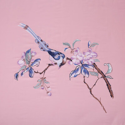 被面采用刺绣图案点缀,显得生动有趣,尽显古典雅致格调。简约直角床单,便于包裹床垫。信封式枕套,可轻松拆卸,便于换洗。