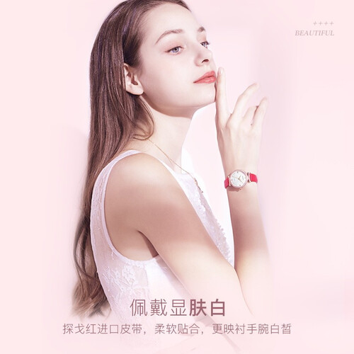 探戈红的进口皮带柔软细腻,不仅佩戴舒适方便,而且衬托肤色白皙,凸显名媛气质。合成蓝宝石表镜耐磨防刮,透光度极佳。