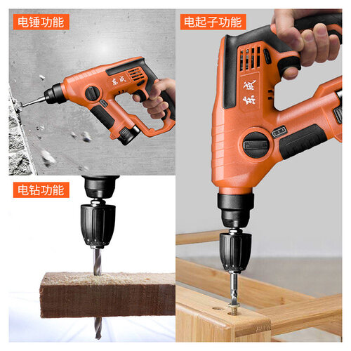 功能多样,秒变电锤,电钻和起子机,室内室外各种工况轻松搞定。电锤运用气缸式锤击法,打孔力度更大,一锤在手承重墙也可应对。