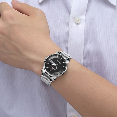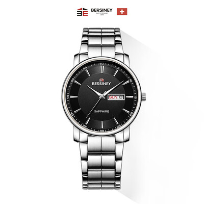 原装进口机芯,日期、星期双显。实心精钢表带,贴合手腕,双按蝴蝶型表扣,方便佩戴。合成蓝宝石抗磨损镜面,让配戴者更省心。