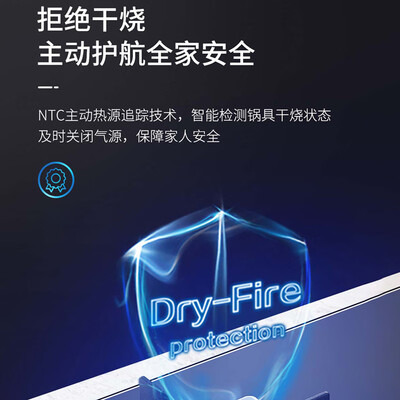 采用智慧防空烧设计,点火后忘记放置锅具3分钟左右会主动关气熄火。油炸食物时油温超过230℃,立刻关气熄火保障安全。