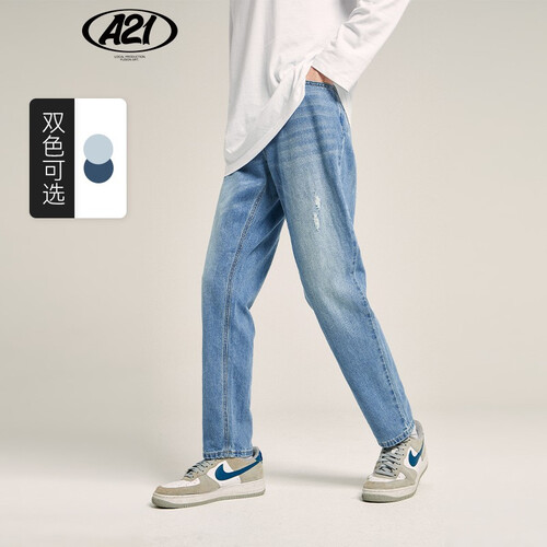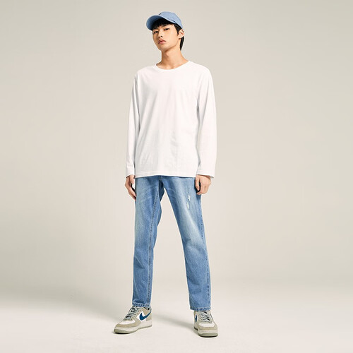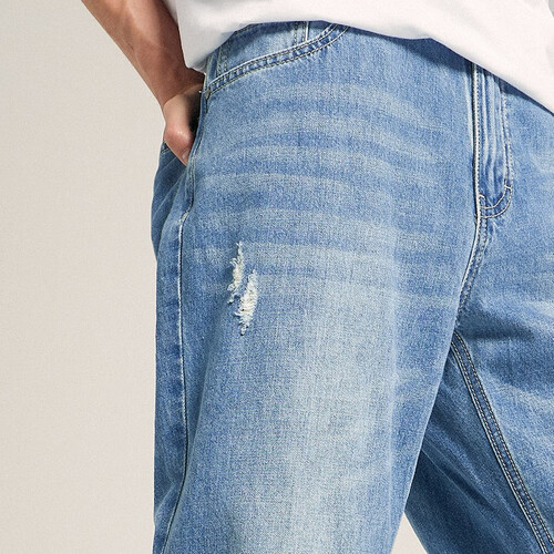 小吊磨处理,为裤身增加了时髦感,不显单调。直筒的版型,胖瘦的身材都可以轻松驾驭。