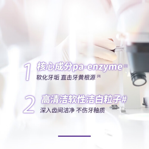 从木瓜中提取蛋白酶酵素成分,能够温和分解牙渍,减少牙菌斑,让牙齿重现美白光泽,特别适合希望提高牙齿亮泽度人群。