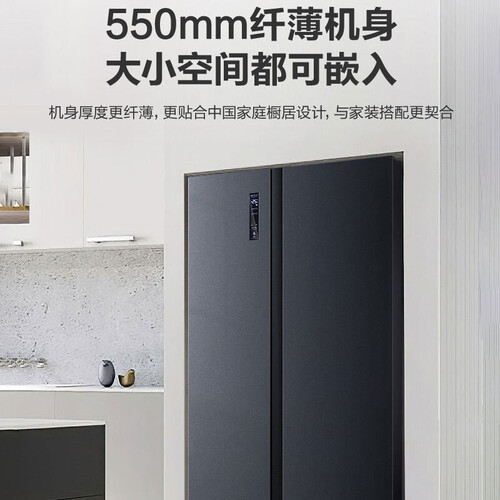 这款十字门对开门冰箱采用了纤薄的机身设计,大幅度减少占地面积,小户型家庭也能轻松使用。双变频设计提升保鲜效率。