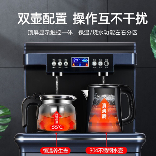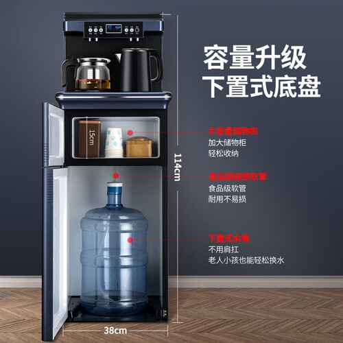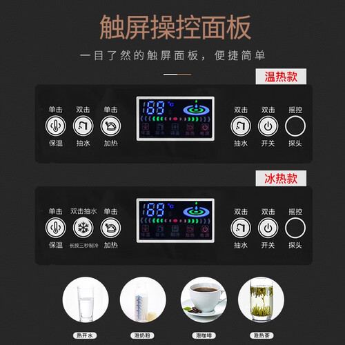 智能遥控,不用麻烦自己去调温度和加水;下置水桶,换水方便快捷;双出水口设计,冷水热水想喝什么就喝什么。