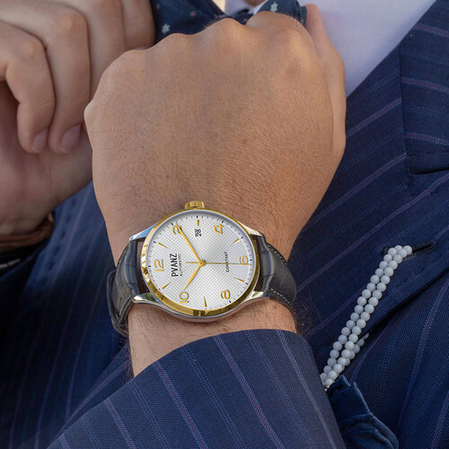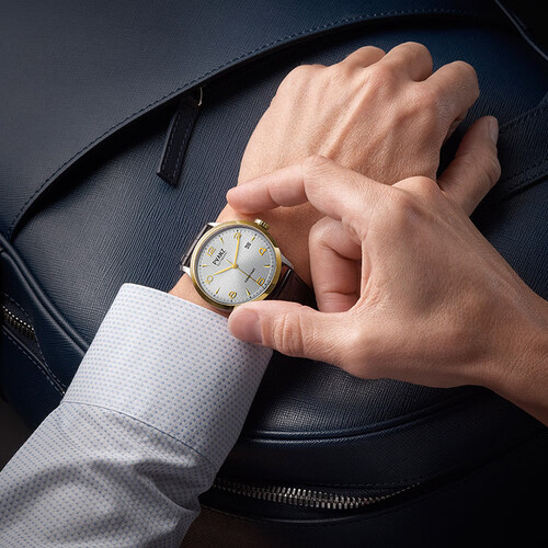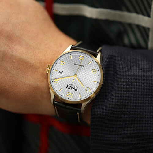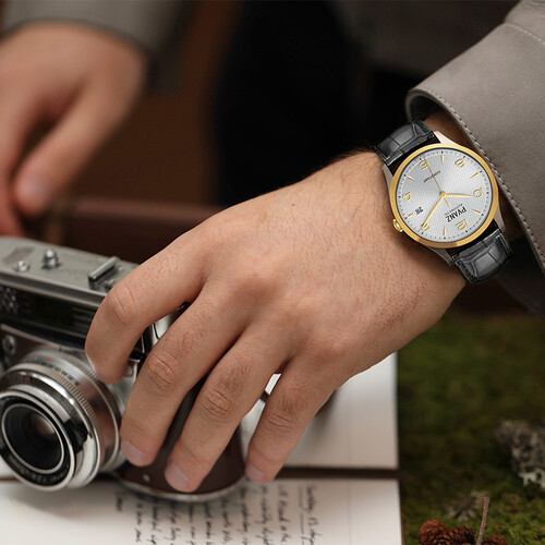 经典的放射型白色表圈,周围采用精致大气的玫瑰金表圈,显得层次感十足。简约的数字刻度与修长的三指针,显得干练又洒脱。