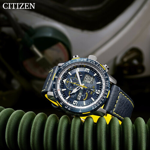 西铁城 深海蓝盘带夜光手表