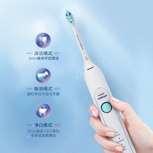 杜邦软毛打造的刷头,纤细柔韧,能够深入狭小的缝隙,清洁牙菌斑。使用时,动力逐渐增强,带来舒适的刷牙体验。