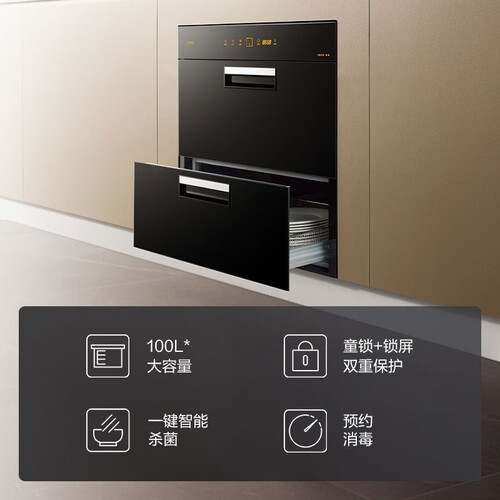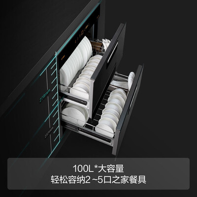 这款内设智能排湿风机,可以定期开启,保持餐具干爽。同时配备100L大容量,轻松容纳大量餐具消毒需求。