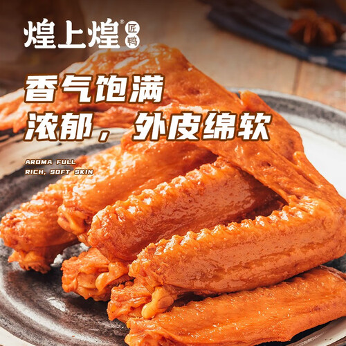 煌上煌精选鄱阳湖麻鸭,肉质结实脂肪少。组合包含了鸭脖、鸭翅、鸭锁骨还有鸭掌,甜辣口味,辣味适中,稍微带点甜。