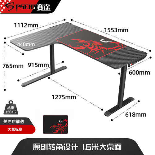 带有全覆盖鼠标垫,能够更加全面的保护桌面,不易受损,底部可调节桌脚设计,轻松应对不平整地面,时刻保持桌面平稳。