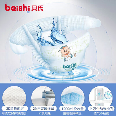 蜂窝状的面层设计,接触面小减少对肌肤的摩擦。全芯体结构,快速吸收强力锁水。配备魔术贴,松紧自由调节。