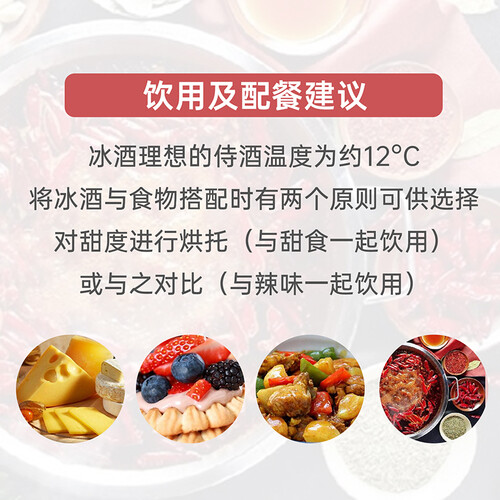这款冰葡萄酒,酒体呈现金黄诱人,严选葡萄品种经酿酒大师精心调制,口感醇香浓郁令人回味悠长。