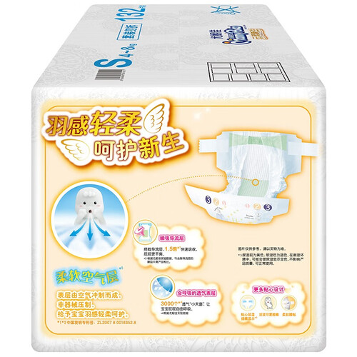 表面凹槽式的透气孔处理能够排湿排热,让宝宝远离红屁股的烦恼。内芯搭载干爽导流层,能够锁住尿液避免反渗。