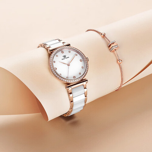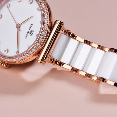 白搪瓷盘面色泽洁白亮丽,塑造干净利落的职场气质。亲肤陶瓷表带,光滑舒适佩戴不夹汗毛。