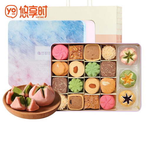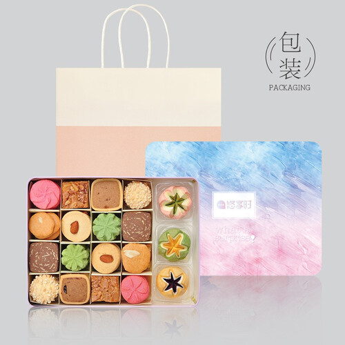 通过礼盒进行包装,精美的糕点与礼盒进行搭配,看上去更加大气。内部糕点制作精美好看,小巧的体积具有酥软的口感。