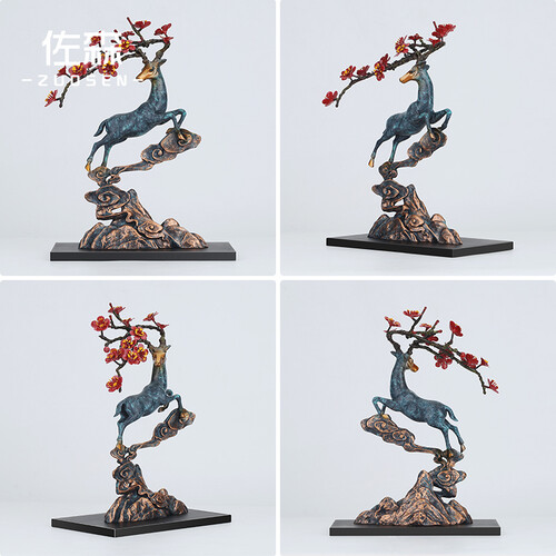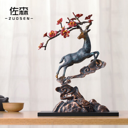 佐森 铜彩梅花鹿摆件