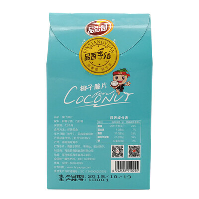 精选海南鲜椰肉烤制,不添加香精、色素、防腐剂,安全放心。非油炸,非膨化,口感清爽,入口甜而不腻,满口椰香,令人回味。