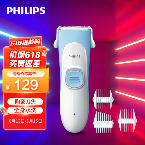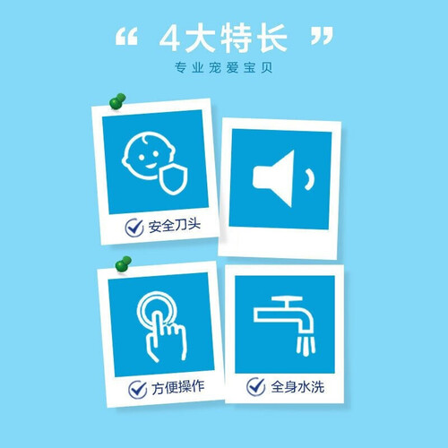 防水机身,全身放心水洗,碎发残渣轻松清洁,灵活省力。圆润刀头设计,使用安全系数更高,不易刮伤儿童娇嫩肌肤。